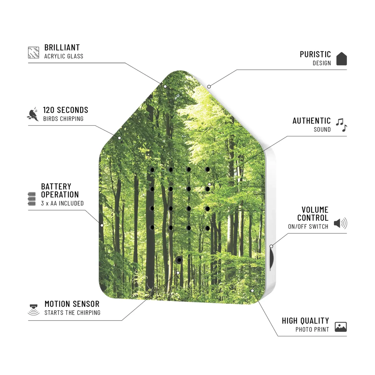 Let the Zwitscherbox Forest bring the peaceful sounds of nature into your life, transforming your space into a haven of relaxation.