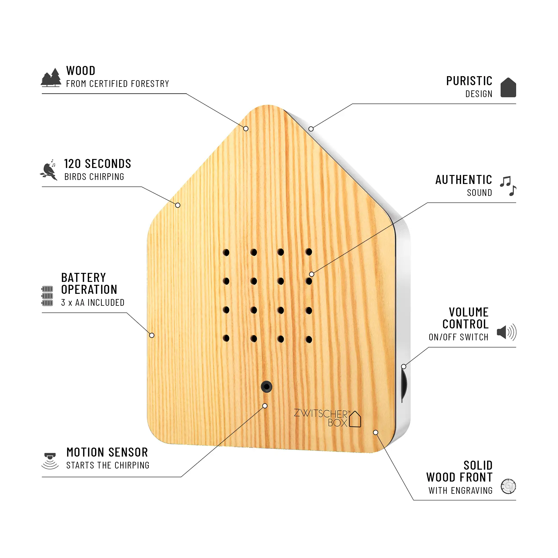 Let the Zwitscherbox Pine bring a touch of natural relaxation into your life, helping you create moments of calm and tranquility wherever you go.